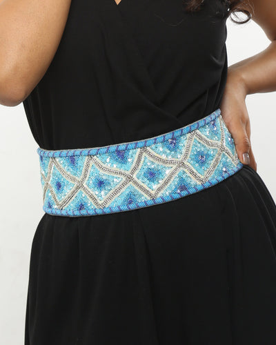 Icy Blue Beaded Corset Mini Dress – Sweetheart Neckline & Spaghetti Straps