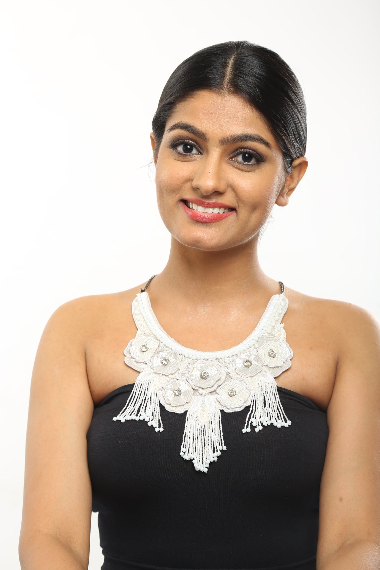 The delicately crafted Khloris Necklace, hand-embroidered with pearls, beads, and stones, is truly a trendsetter. Its intricate design and refined elegance make it a standout piece, exuding timeless charm and modern sophistication.