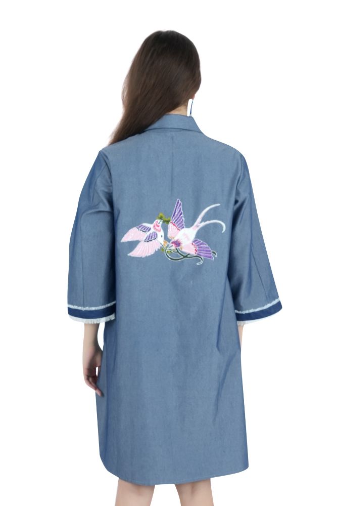 Our 'Washed Denim Oversized Midi Dress' combines casual style with chic elegance. Featuring two front pockets, bell sleeves, and small slits at the sides, it's perfect for any occasion.
